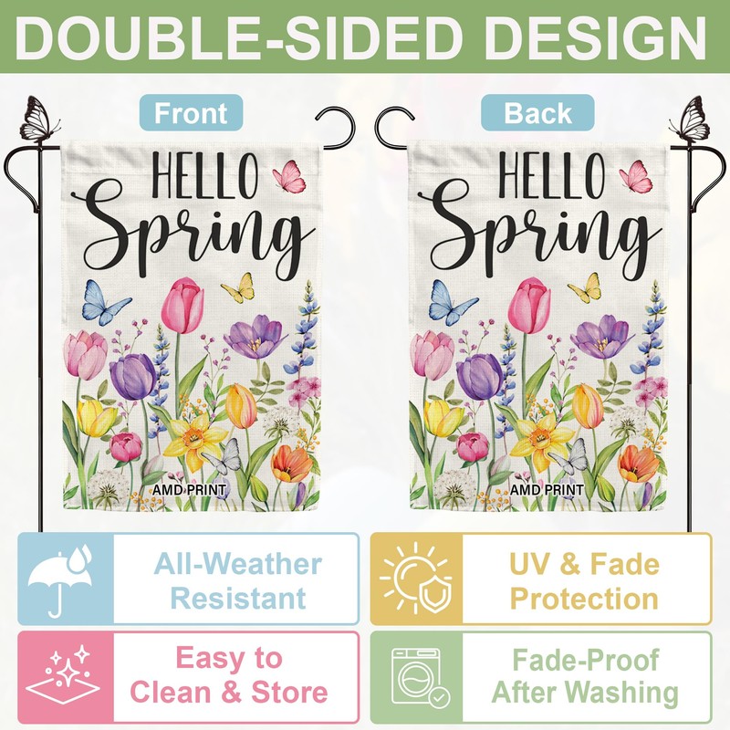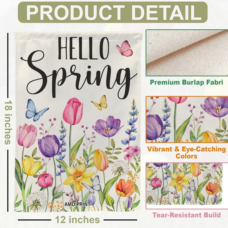 - VERSATILE SPRING DECORATION: Ideal for spring decoration, this flag highlights your outdoor space, great for porch, yard, lawn, patio, garden, etc.