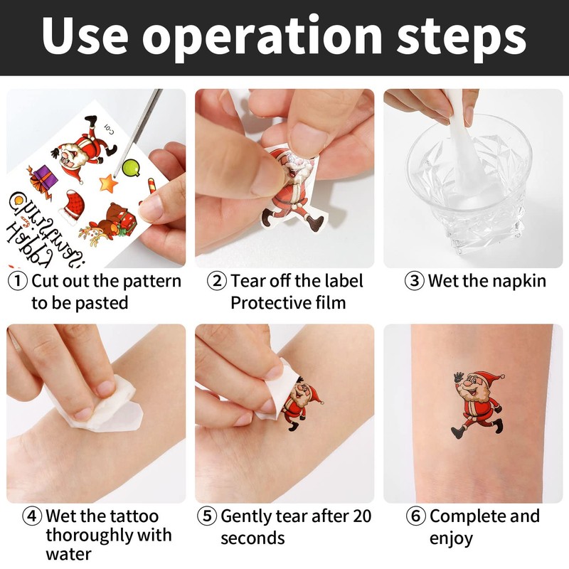 - Premium quality materials: BOOSHMall children's Christmas tattoo stickers are made of high-quality and safe paper with clear print and bright colours. It will not fade easily and will not damage your skin.