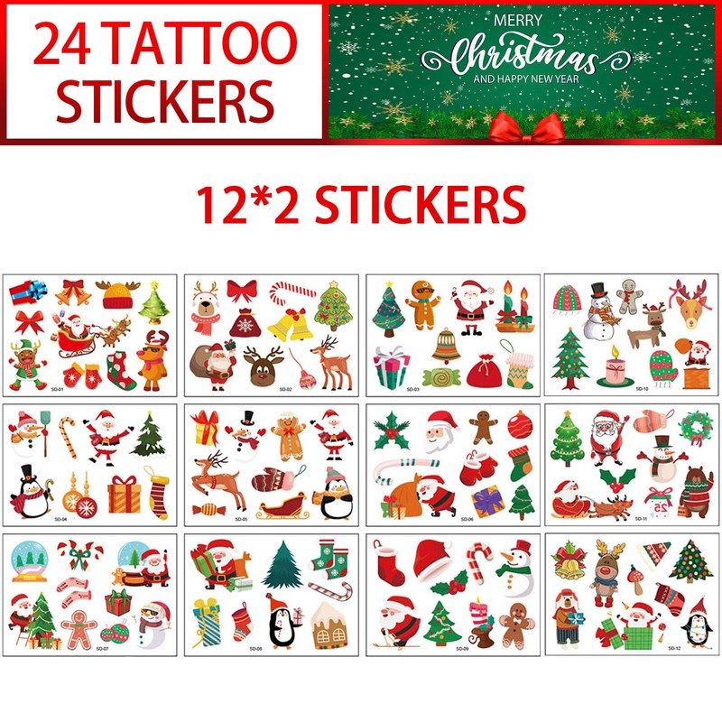- Package contents: colourful Christmas tattoos for children, each pack contains 24 sheets of temporary Christmas tattoo stickers for children, the product size is 11.4 x 8 cm.