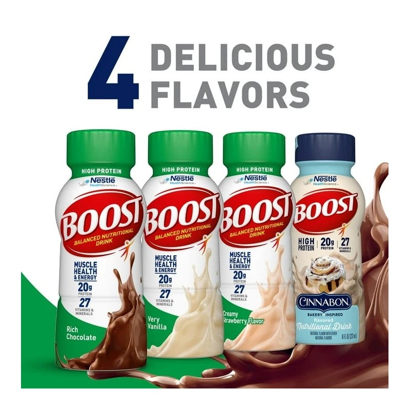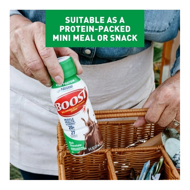 - 24 pack of 8 fl oz bottles of BOOST High Protein Rich Chocolate Nutritional Drink