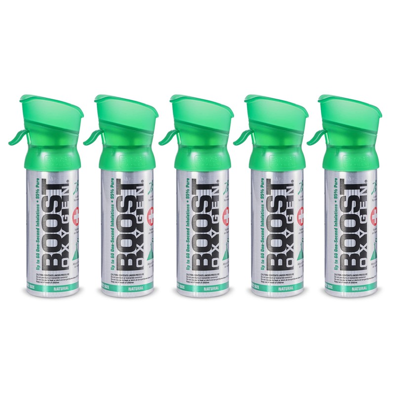 Boost Oxygen Pocket Sized 3 Liter Natural Pure Canned Oxygen Bottle Canister with Built In Mouthpiece for High Altitudes, Natural Flavor (5 Pack)