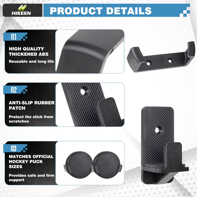 • DURABLE AND SAFE: The hockey stick wall mount is made of thicker ABS plastic, sturdy, safe and reusable, keeps hockey pucks securely displayed on your wall and is suitable for holding most and all sizes of sticks.
