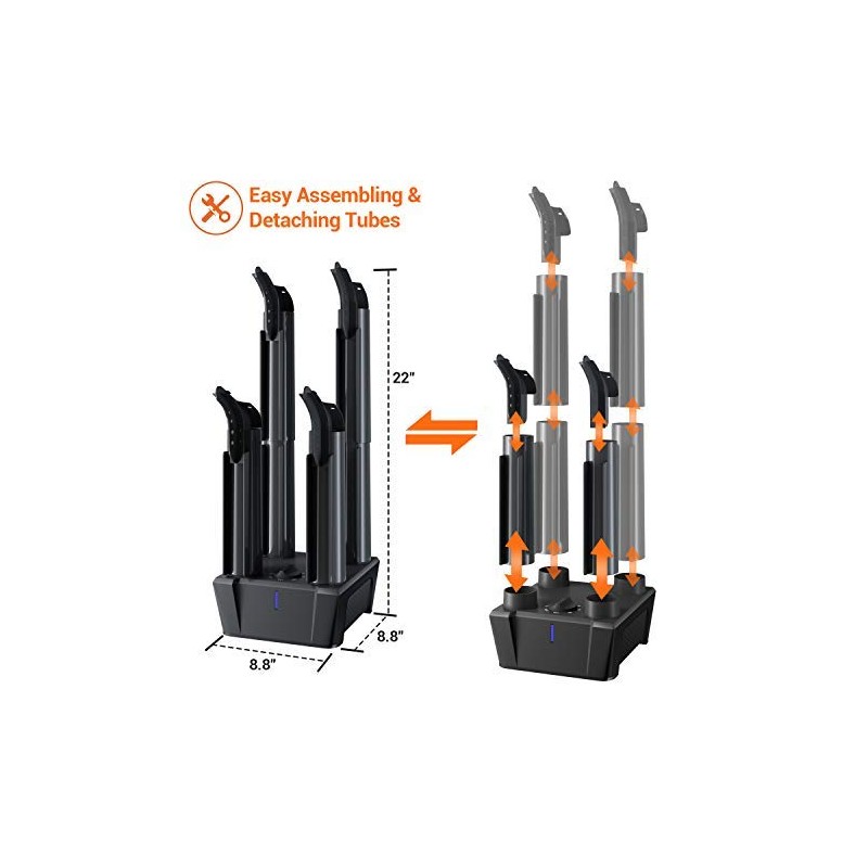 - SIMPLE ASSEMBLY & COMPACT STORAGE: What's great about this dryer is that when you're not using it, it doesn't sit around cluttering up your house. You can actually disassemble all 6 air tubes and 4 shoe brackets, and even join 2 air tubes together to elongate for drying tall boots! When you're done, pack it all up and put it away until next time!