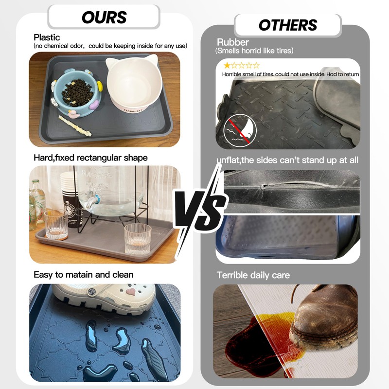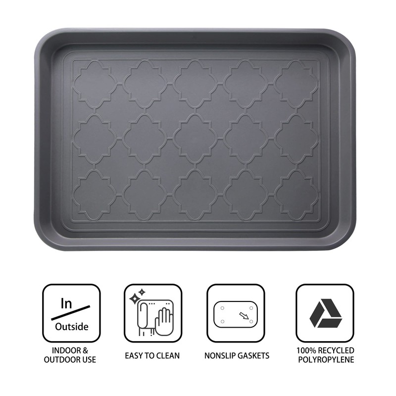 • NON-SLIP BOTTOM- Size 16.7"x12.8"x1.2", Our boots tray have 4 non-slip gaskets. You don’t need worry about the tray slide around on the floor.