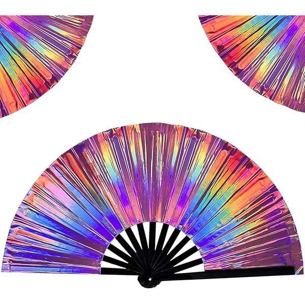 Boots on The Ground Fan,2025 New Large Holographic Folding Hand Fan Line Dance Popping Fan,Boots on The Ground Hand Fan,Folding Hand Classic Style Fan Bamboo Ribs Hand Held Chinese (Colorful)