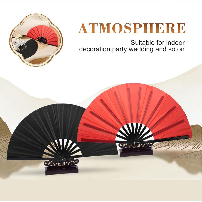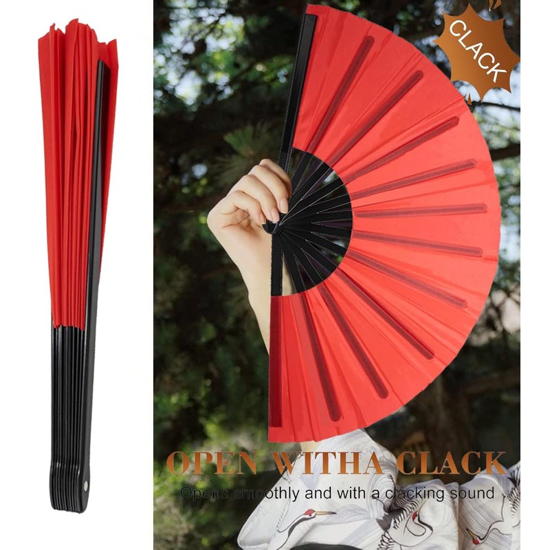 Boots on The Ground Fan,MZinge Large-sized Foldable Hand-cranked Fan. Black Hand Fan,Foldable Fan Suitable for Chinese Kung Fu,Tai Chi,Line Dance,Dance,Music Festivals,Parties and Decorations (RED)