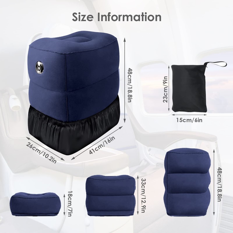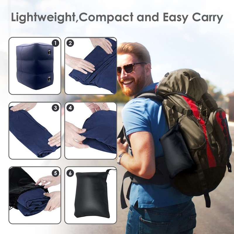 - Portable and lightweight: the inflatable footrest weighs only 1 pound, you can fold it (not inflated) into a 7" x 10" drawstring bag, which can easily fit in your luggage.
