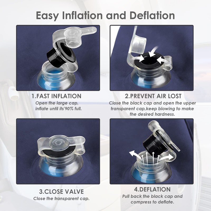- Easy to use: this inflatable foot cushion has 2 separate air valves for easy inflation and deflation. The top black air valve is a one-way or auxiliary air. The transparent air valve can be quickly inflated and deflated. You can blow with your mouth or use the air pump to inflate within one or half a minute.