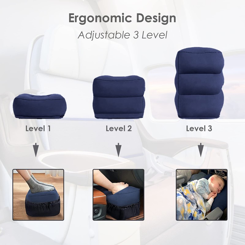 BOOWEN Inflatable Footrest Travel Height Adjustable Foot Rest Portable 3 Layers Foot Cushion Footrest Cushion Children for Sleeping Foot Rest for Aeroplane Car Train Home Office (Blue)