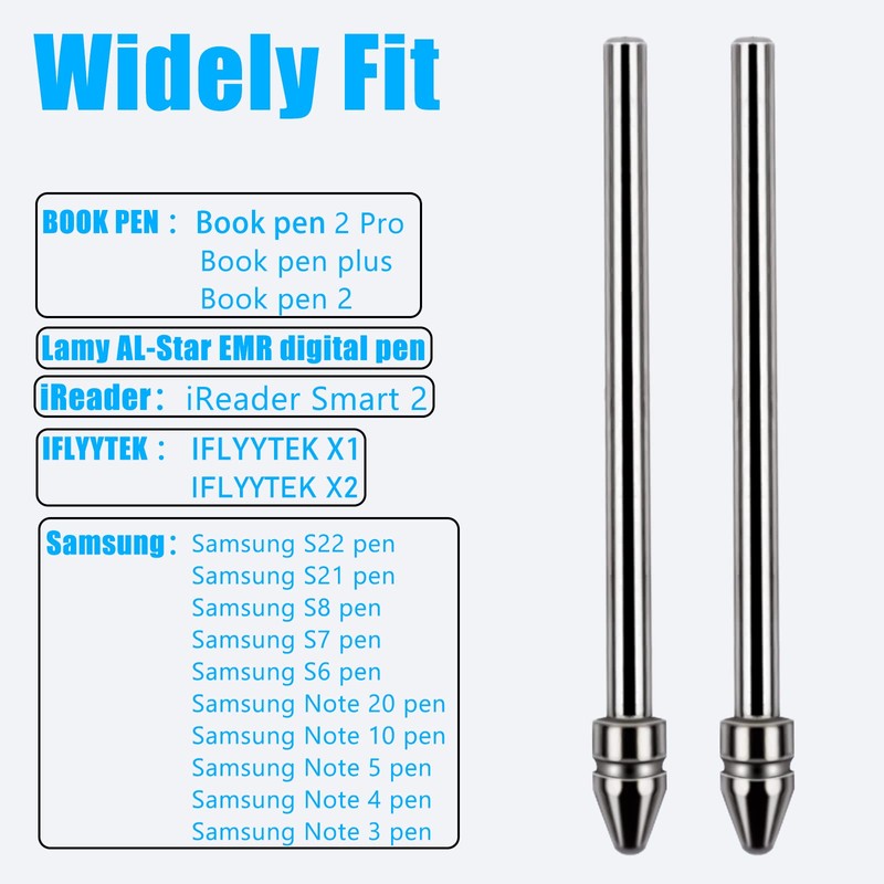 • 幅広いフィット:BOOX Pen 2 Pro、BOOX Pen Plus、Pen 2、iReader Smart 2、IFLYYTEK X1、X2ペン、Lamy AL-Star EMRデジタルペン、Samsung S23/S22/S21/S9/S8/S7/S6/Note 20/Note 10/Note 5/Note4.Note 3ペンに対応。 、以下にはフィットしません。 他のスタイラス。