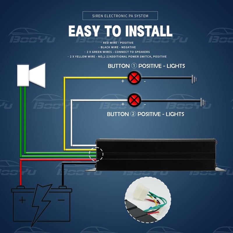 BooYu Police Emergency Slim Speaker Horn Siren PA System for Vehicles Truck Firefighter Ambulance Tow UTV ATV Van Car POV RV [12V/200W][120-135dB][Handheld Microphone][Hands-Free][2 x 10A Switches]