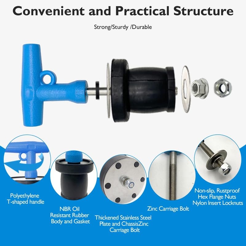 - Convenient, Practical & Leakproof Plugs: The BOPOREAE T-Handle Drain Plug is a twist/turn pipe plug for a leak proof seal; The Premium Stainless Steel and Nitrile Butadiene Rubber (NBR) construction makes this test plug resists heat, anti-freeze, oil and rust inhibitors, wear-resistant, wet-dry versatile and airtight; Sturdy and Durable, Not Easy To Deform