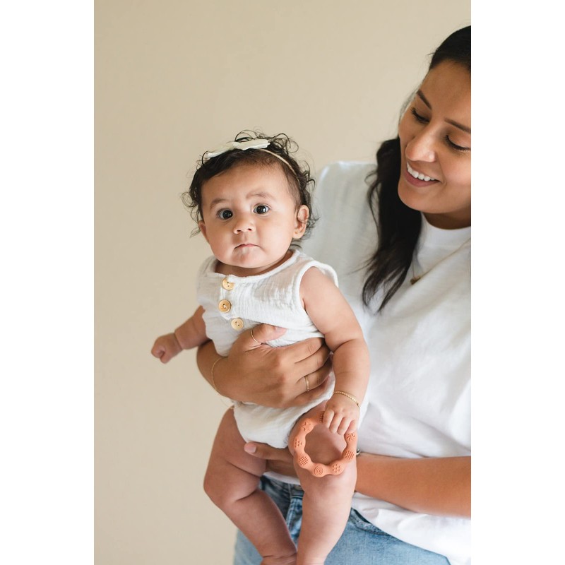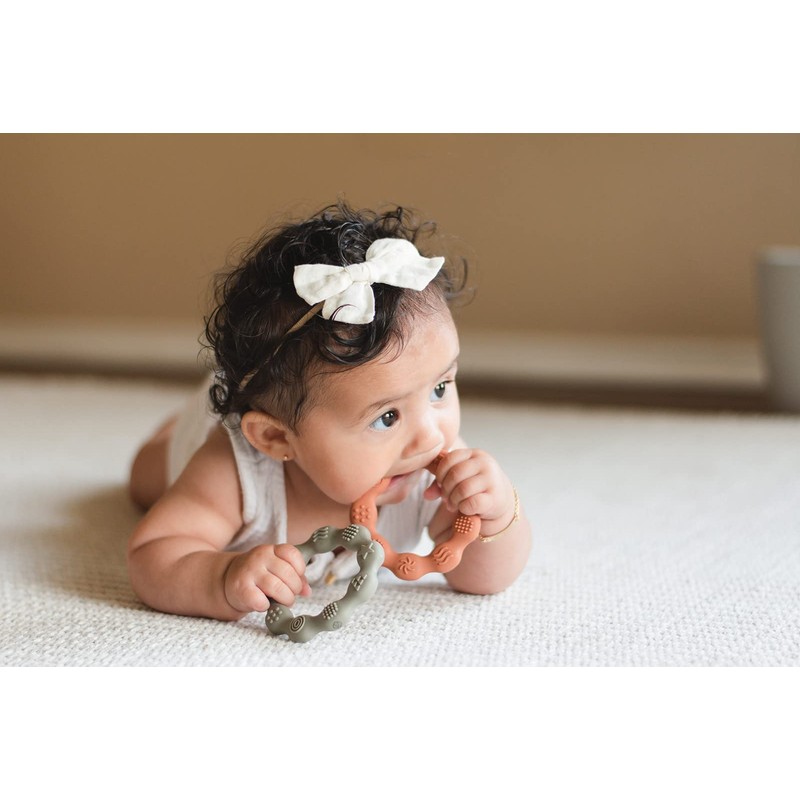 - 2 PACK OF TEETHERS. One of each color including: pumpkin, sage.