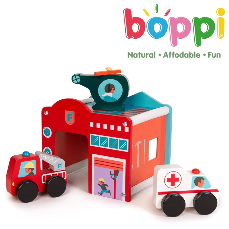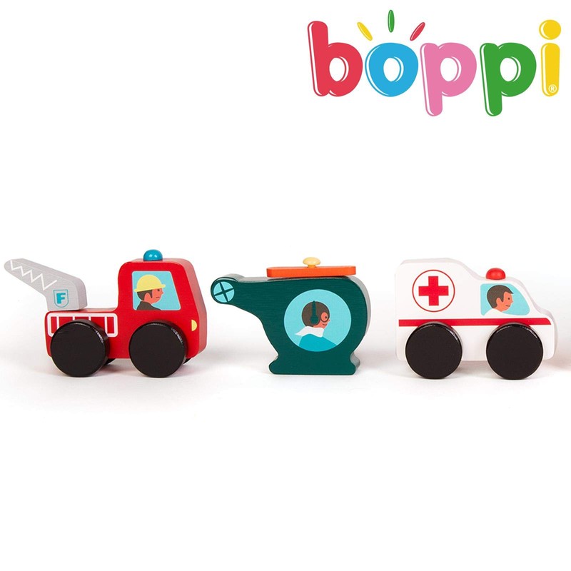 boppi Wooden Toy Emergency Rescue Centre Building Playset | Toys with Ambulance Fire Engine and Helicopter | Play Accessory Vehicles for 3 Years and Up