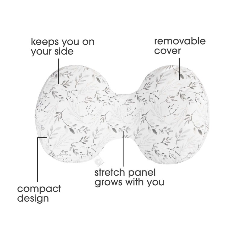 Boppy Side Sleeper Pregnancy Pillow with Removable Jersey Pillow Cover, Gray Falling Leaves, Compact Stay-Put Design with Signature Stretch Panel, Prenatal and Postnatal Positioning