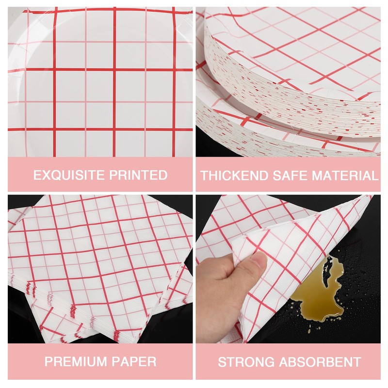 - Reliable Material:This red and white gingham party tableware set is made of high quality thicker paper that won't easily break or fold. The napkins are double thickened paper towels, comfortable, soft and adsorbent.