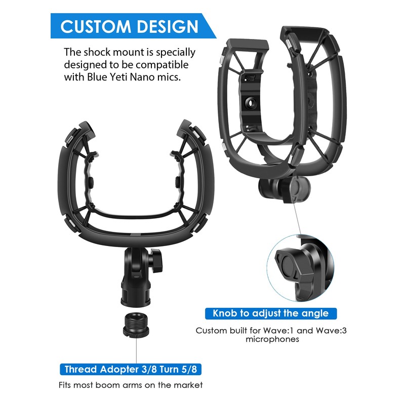 - 【All-in-one Comboo】:Professional Recording Studio Equipment with adjustable desk microphone stand, durable shock mount, 3/8" to 5/8" Adapter, microphone foam windscreen. All the items of the package can meet your need for live streaming, broadcast, audio recording and more. (Note: Shock mount and foam windscreen are custom built for Blue Yeti Nano microphone.)
