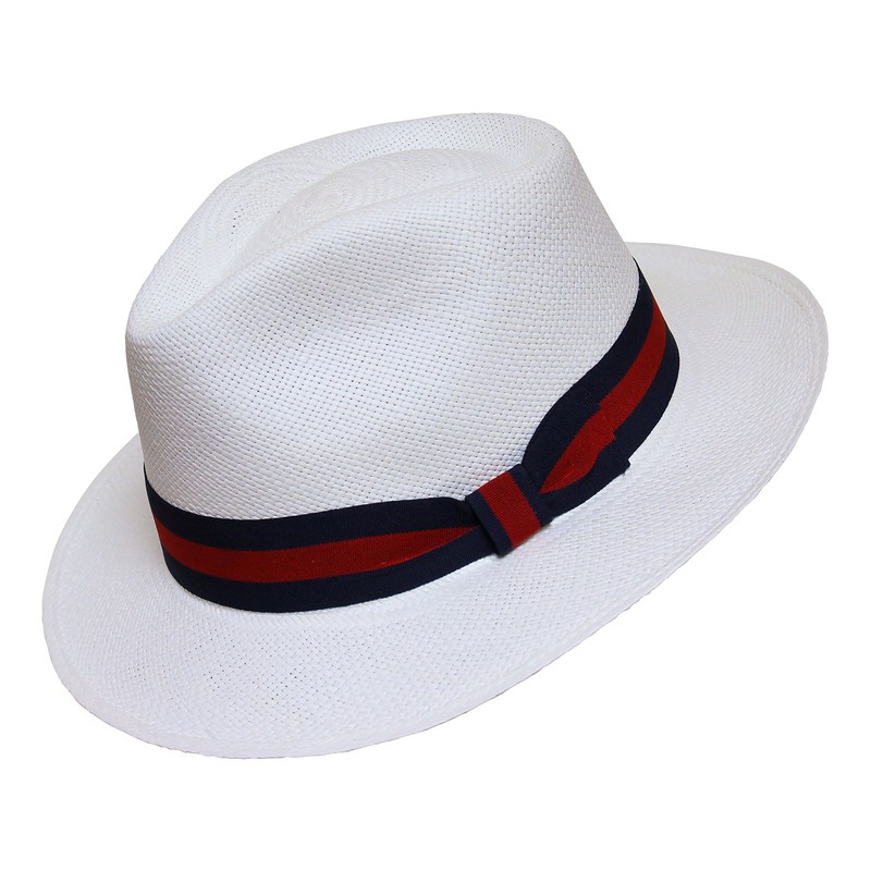 Borges & Scott - Teardrop Fedora Panama Hat - Cream Straw with Blue and Red Band - 56cm