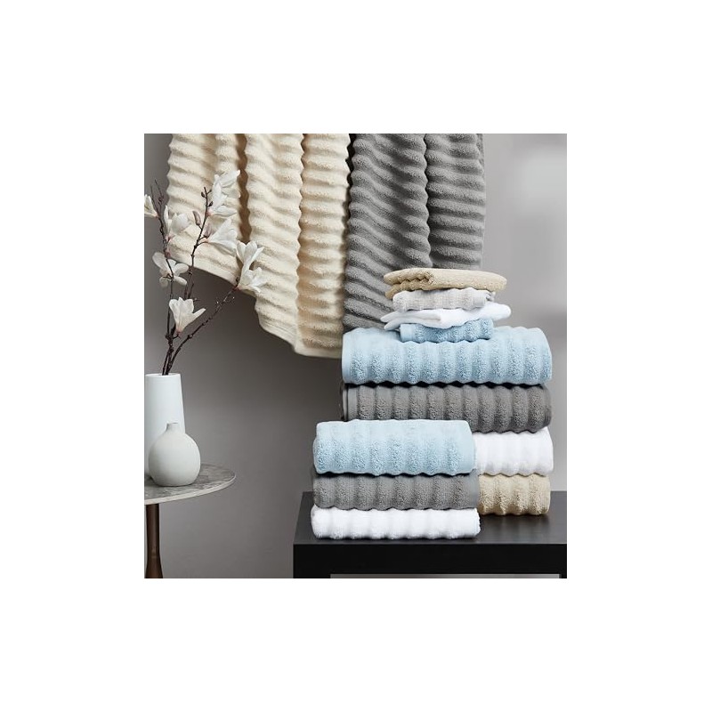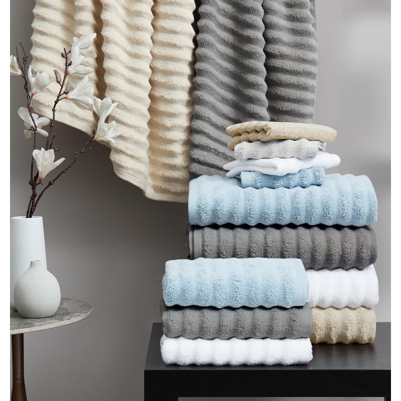 • Upgrade your bathroom with the Borghese Ribbed Zero Twist 6 Piece Towel Set and indulge in luxurious comfort and style with every use