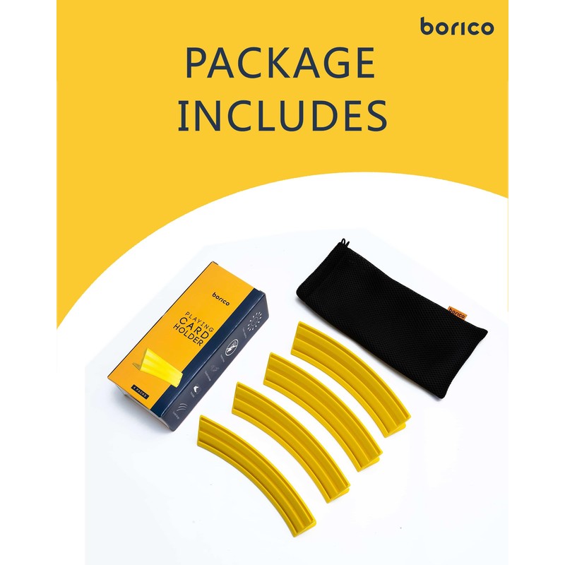 BORICO - Portatarjetas para jugar a las cartas, paquete de 4 soportes para cartas para niños y adultos, bandeja apilable para tarjetas de juego para pacientes con artritis con una bolsa de viaje (amarillo)