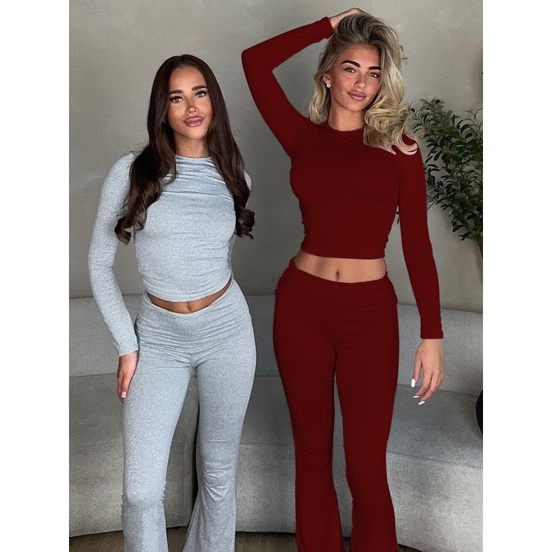 - Design: The fall two piece outfits feature with fold-over low rise flare pants design, crew neck, slim fit, long sleeve crop top, The jogging suits keeps you warm and comfy, is always ready to daily, workout and lounger. The airport travel outfit is perfect for women and teen girls
