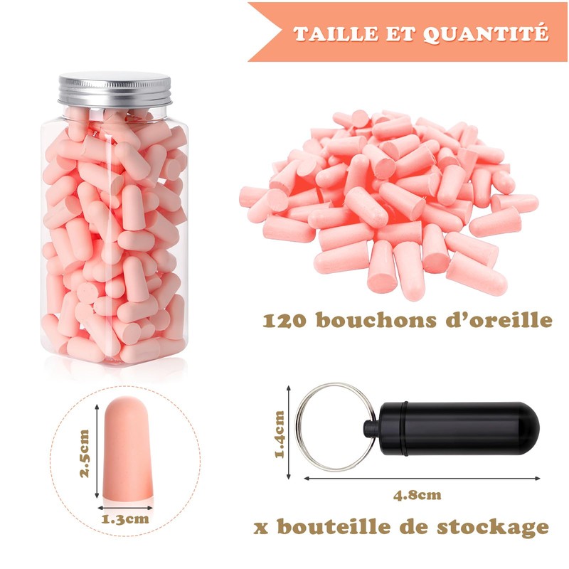 - 【Ohrstöpsel Set】Sie erhalten 120 rosa Ohrstöpsel, eine ausreichende Menge, um Ihren täglichen Bedarf zu decken. Neben der transparenten Aufbewahrungsflasche erhalten Sie auch eine kompakte und leichte schwarze Aluminiumaufbewahrungsflasche, die sich ideal für den Transport Ihrer Ohrstöpsel eignet.