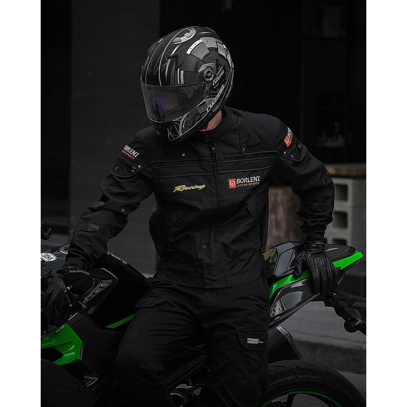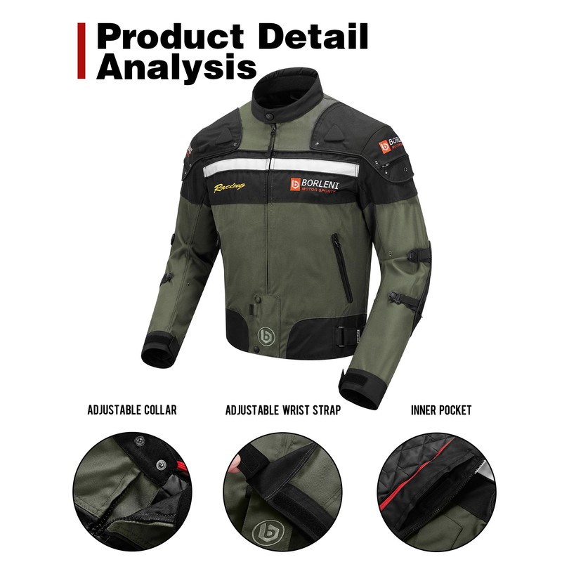 BORLENI Motorcycle Jacket Windproof Motorcycle Full Body Protective Gear CE Armor Suitable for All Seasons,Green,L