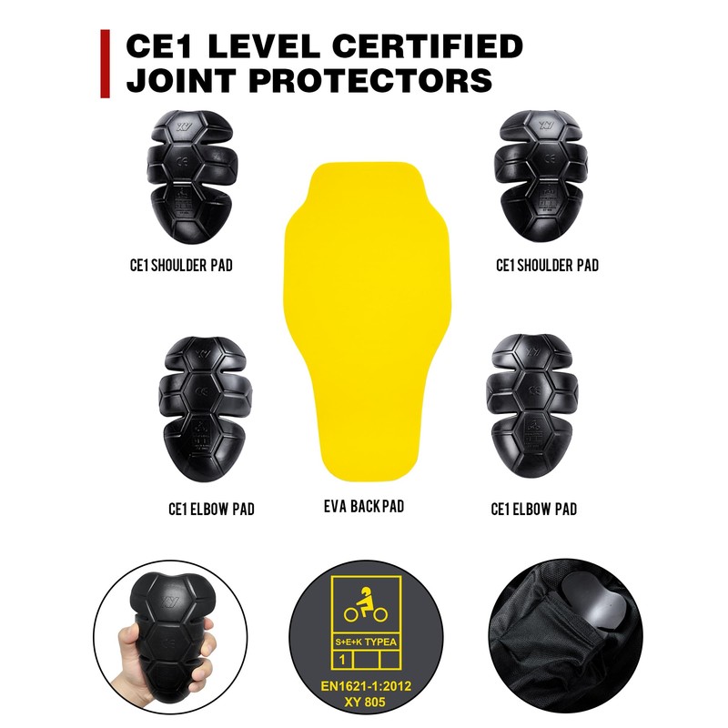 - 4.Equipped with reflective strip on the back of the jacket for your safety, this armored outerwear will ensure your presence among other motorists in night.