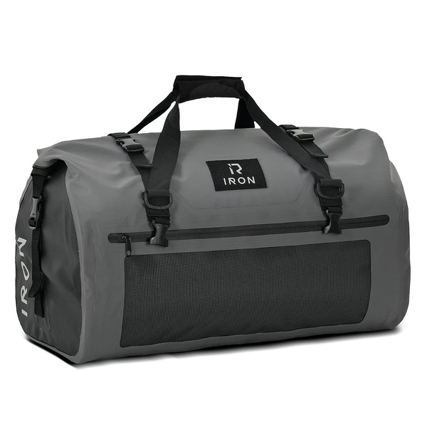 BORLENI Waterproof Motorcycle Dry Bag -Motorcycle Dry Duffel Bag Luggage Tail Bag Saddle Bags with Large Storage Space, Outer Mesh Zipper Pocket for Motorcycling Skiing Travel (Gray,30L)