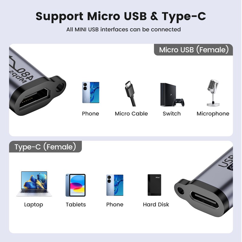 • Multi-scenario Application: Dual-port adapter will easily realize connections that USB C with mini USB devices, which is ideal for home, car, office or travel.