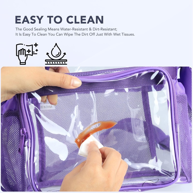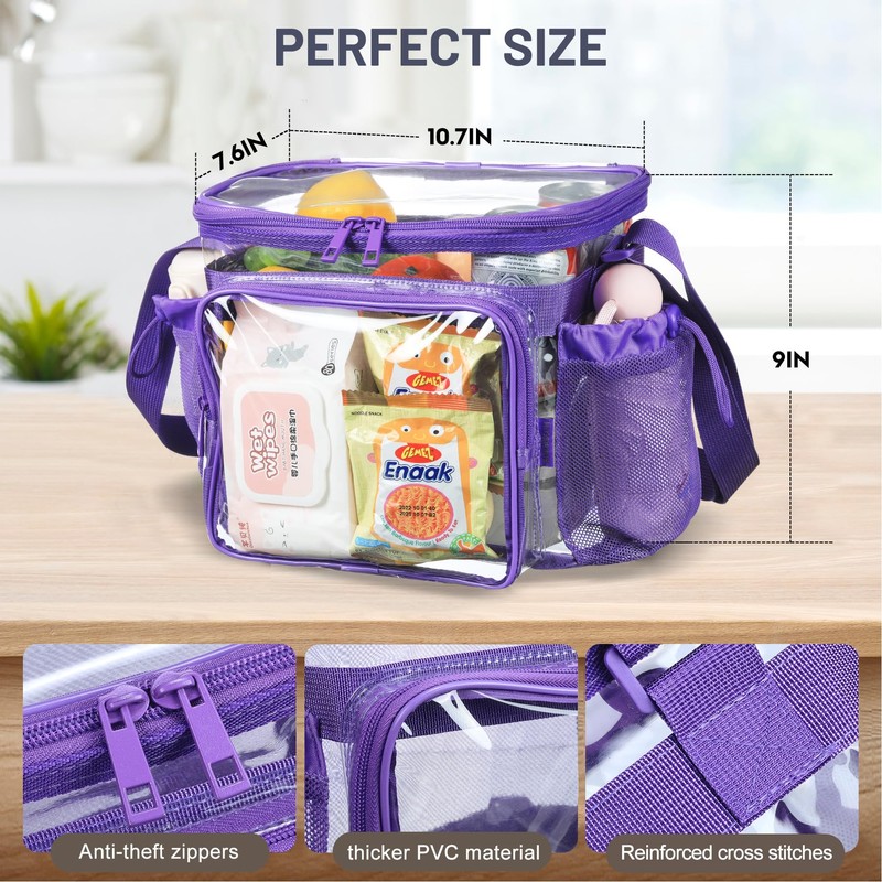 BORMELUN Medium Clear Bag with Pockets, gallon lunch boxes Shoulder Transparent Lunch Bag see thru Plastic Correctional Concets Work -Dark Purple
