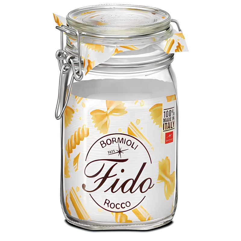 Bormioli Rocco Fido Storage Jar-Wire Bail-1 L-1 Pack, 1 liter, Clear