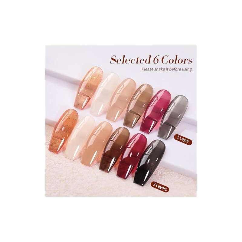 - PACKUNGSINHALT:6 Flaschen BORN PRETTY 7ml Gelee-Gel-Nagellack Set.Inspiriert von MOST POPULAR GEL COLOR. Sie werden schwindlig vor Freude, wenn Sie diesen Gelee-Gel-Nagellack tragen.Jelly-Gel-Lack macht Ihre Nägel wie eine Kirschblüte Gelee, es ist ein semitransparentes Nagelgel. Eine Schicht, zwei Schichten und drei Schichten sind unterschiedliche Wirkung.