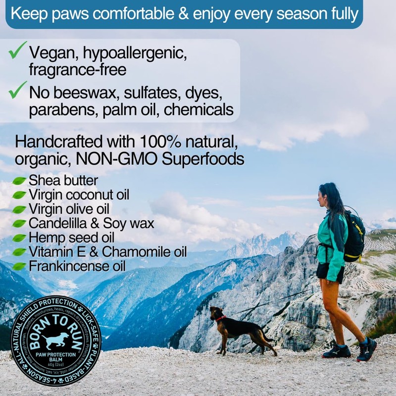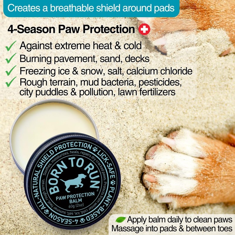 BORN TO RUN Dog Paw Balm | Natural Paw Wax Protection for Summer Heat & Hash Surfaces | Soothes Moisturizes Heals Dry Cracked Itchy Rough Paws | Plant-Based Lick Safe All Season Relief Paw Cream 2oz