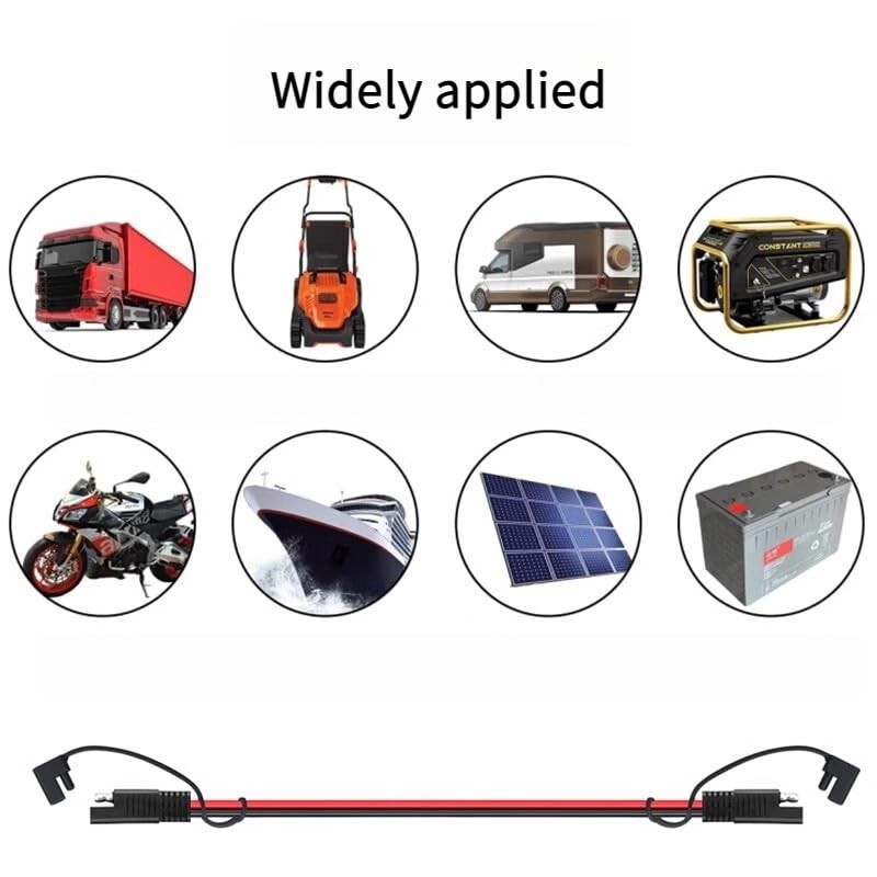 - For expansion and maintenance of most batteries and chargers with SAE quick release connectors.Widely used in a variety of batteries, solar panels, automotive,motorcycles, lawn mowers, ATV, RV, traction motors, kayak, tractor, power inverter and other equipment that requires SAE plugs.
