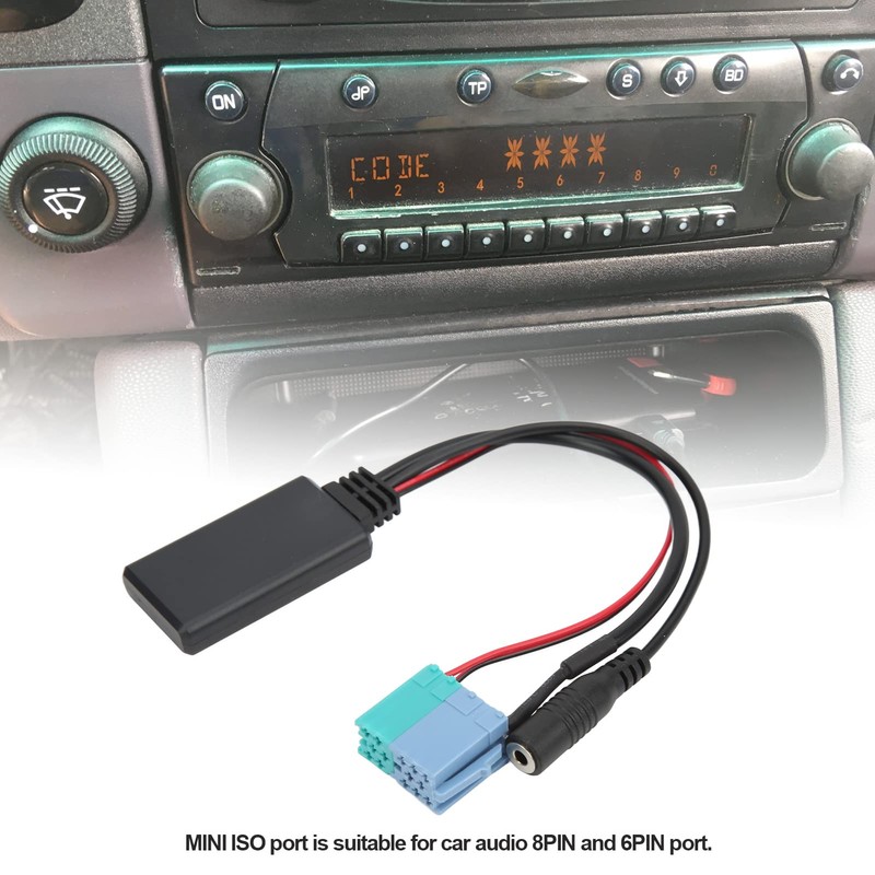 - Hands-free microphone: Car radio Bluetooth audio cable with 150 cm long microphone cable, mini ISO connection is suitable for car audio 8 pin and 6 pin.