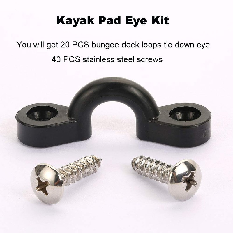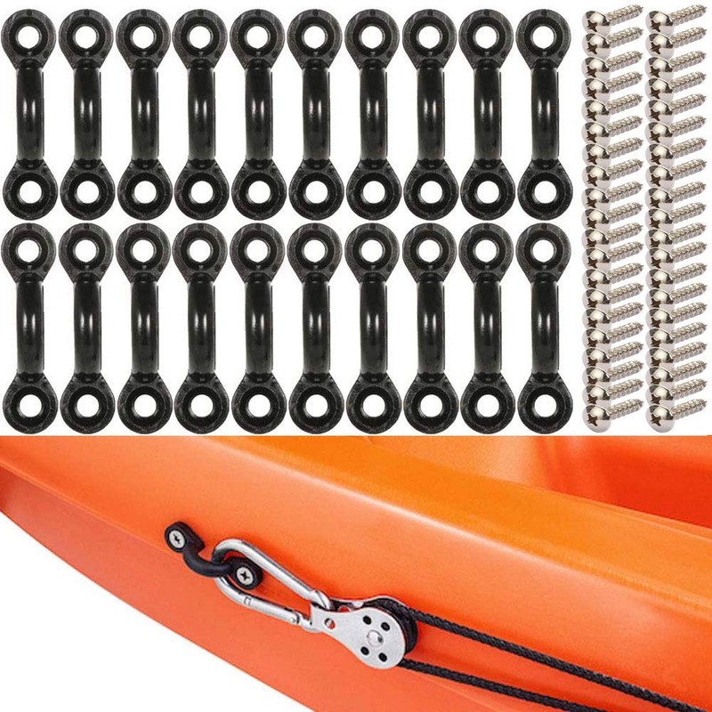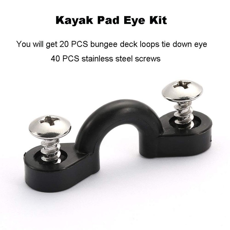 Borogo Kayak Pad Eye Kit, 20PCS Nylon Bungee Deck Loops Tie Down Pad Eye with 40 Screws for Boat Kayak Deck Rigging Kit