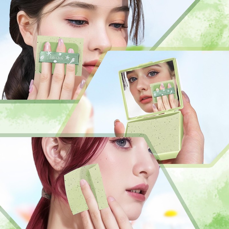 BOROLA 3in1 海洋フレッシュ あぶらとり紙セット 顔用 100枚 携帯ミラー&粘着パフ付き テカリ防止 オイリー肌用 メイク直し レディース(シーウィードグリーン)