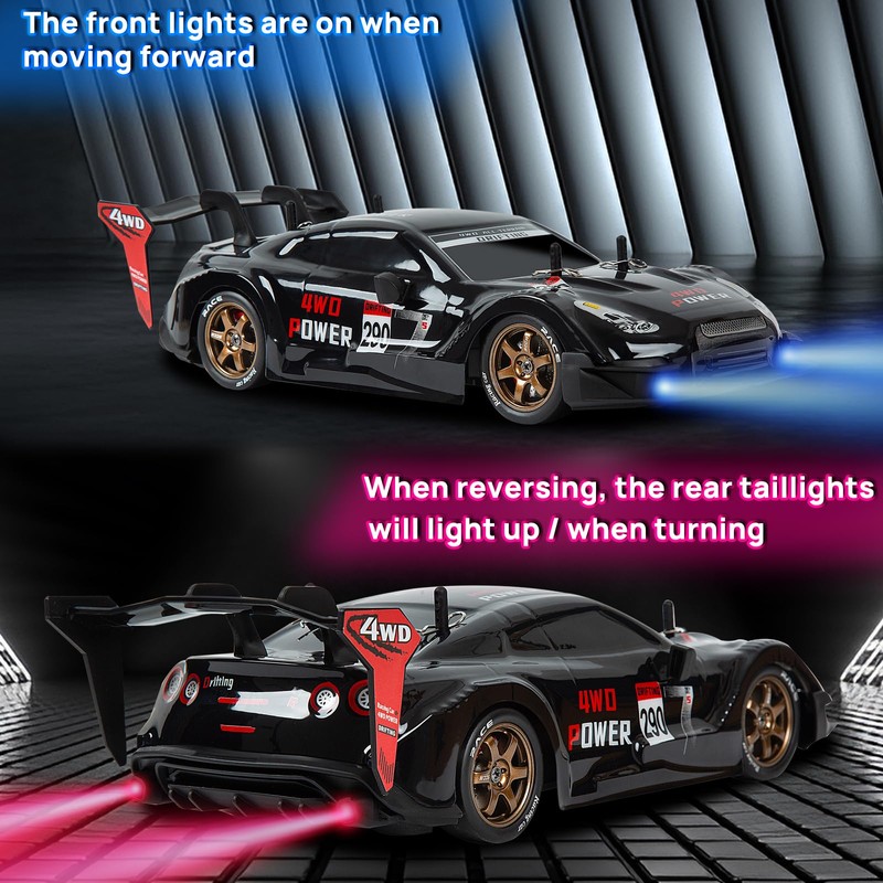 - Classic and dynamic design: this remote controlled drift car is inspired by the aesthetics of classic GT models and enhances your RC experience with this improved drift car case. The RC drift car made of durable PVC, integrated high-intensity LED headlights ensure effortless visibility and precise control during night drifting sessions.