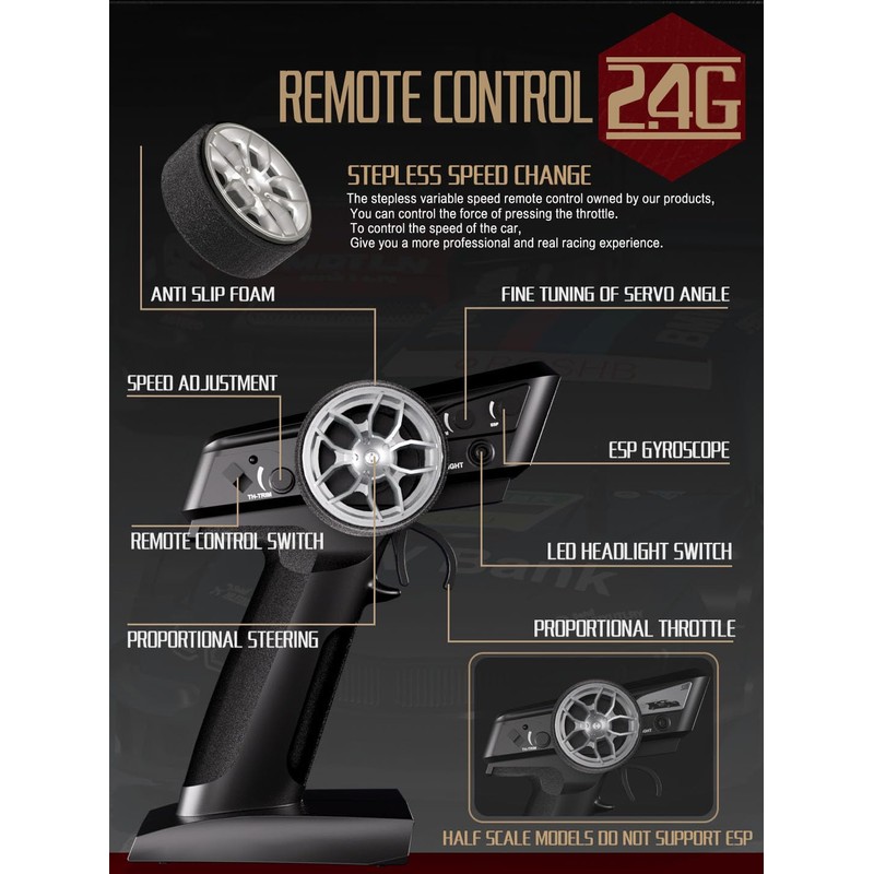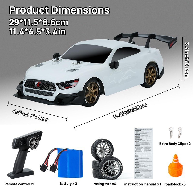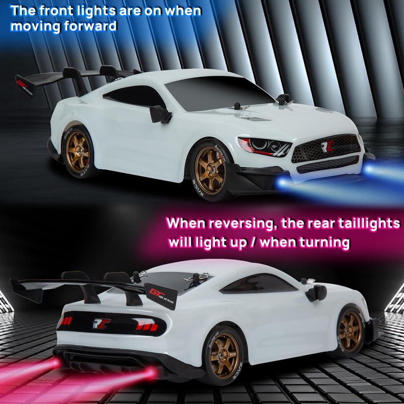 - Classic and dynamic design: this remote controlled drift car is inspired by the aesthetics of classic GT models and enhances your RC experience with this improved drift car case. The RC drift car made of durable PVC, integrated high-intensity LED headlights ensure effortless visibility and precise control during night drifting sessions.