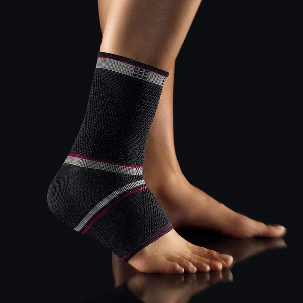 - High-quality active ankle bandage with two textured silicone pads for intermittent massage