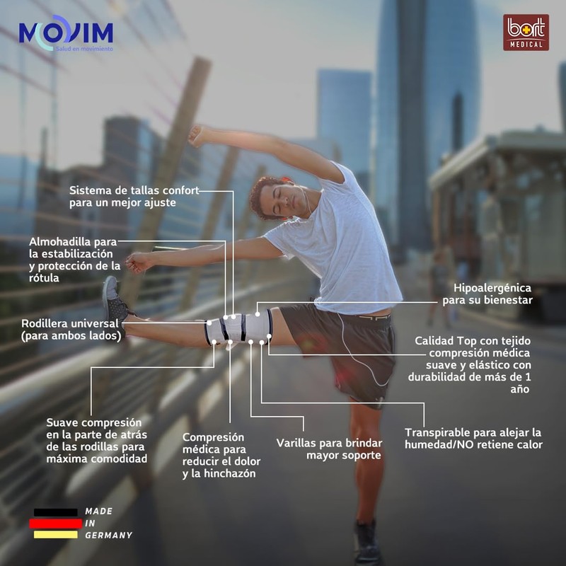 - Classic knee support for soft tissue compression with silicone pad to stabilise and relieve the knee joint