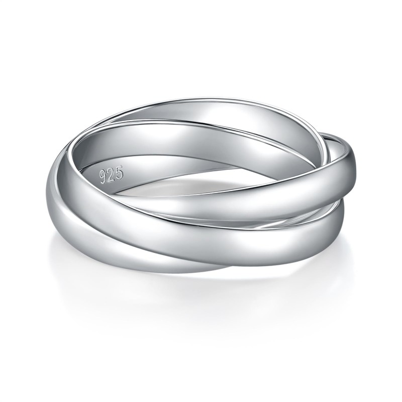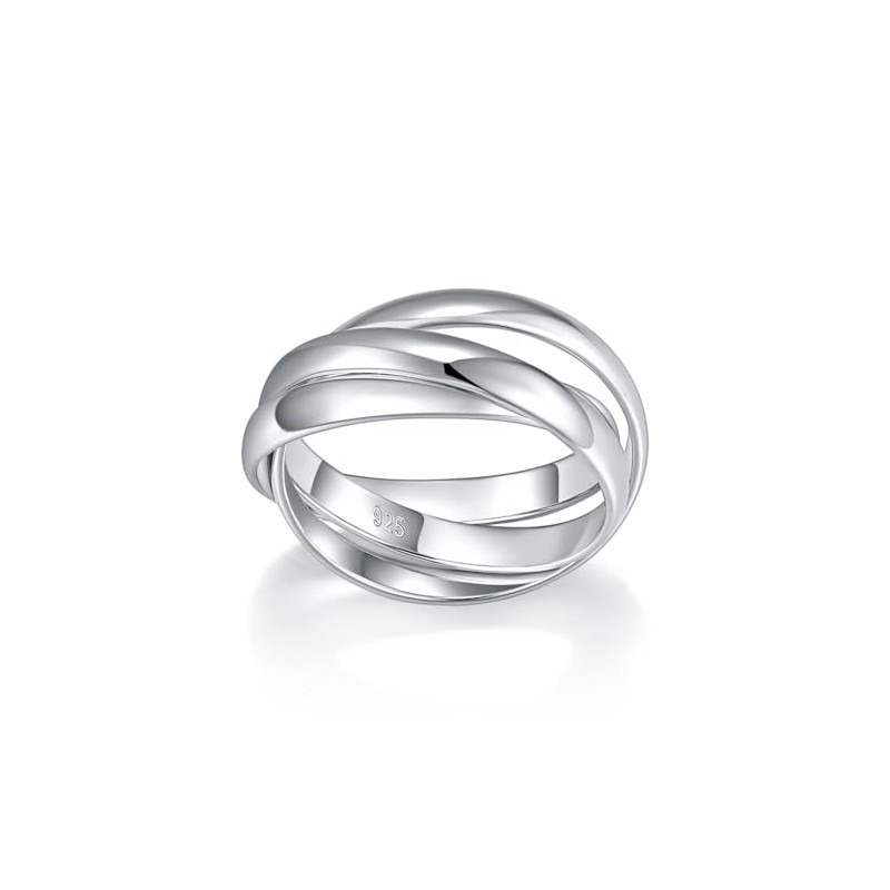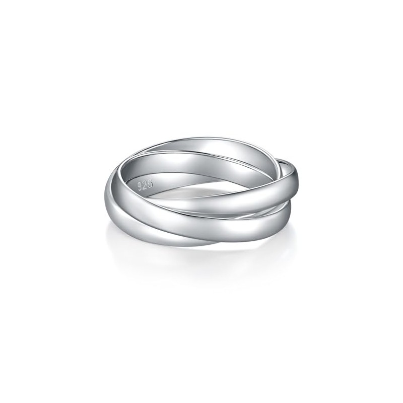 - Elegant 925 Sterling Silver Design – Crafted from genuine 925 sterling silver, this sleek and polished ring features three interlocking bands with a fluid, spinning motion—perfect for daily wear and timeless style. 3mm width each band.