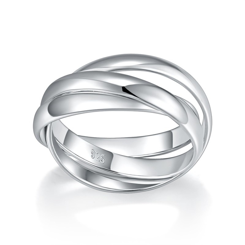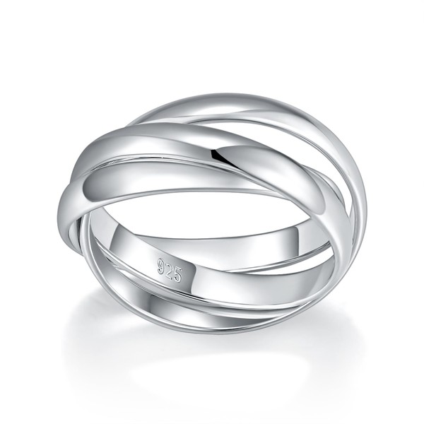 BORUO 925 Sterling Silver Ring, Fidget Ring Anxiety Ring, Triple Row Rolling Interlocking Stacking Rings, High Polish Rings for Women, Men Each Band Width 3mm Size 12