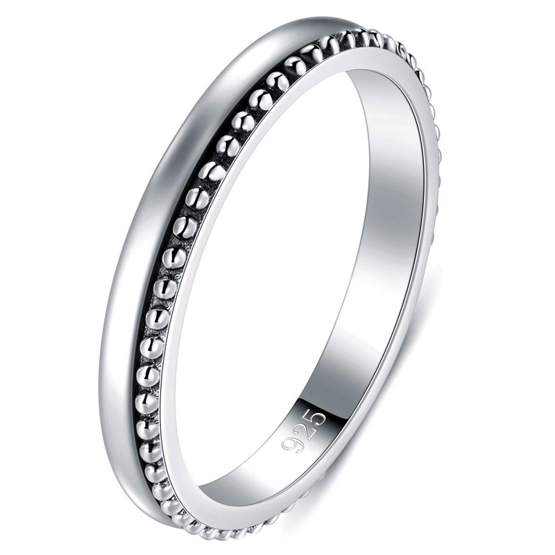 BORUO 925 Sterling Silver Ring High Polish Thin Beaded Bali Stackable Tarnish Resistant Engagement Wedding Band 2mm Ring Size 4