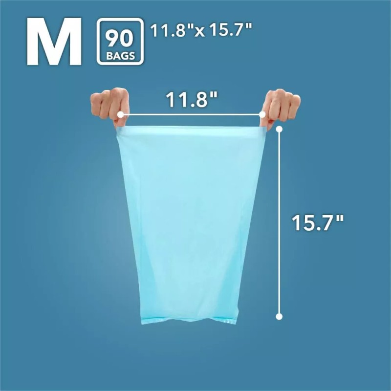Heavy Duty and Great Odor Proof Cat Waste Disposal Bags, BOS- Unscented [Size: M, Color: Light blue] (90 count, Pack of 1) (90 Bags)