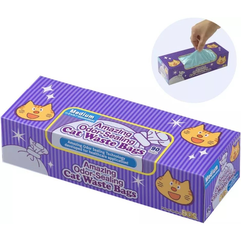 BOS Medium Amazing Odor Sealing Disposable Cat Waste Bags 90 Count