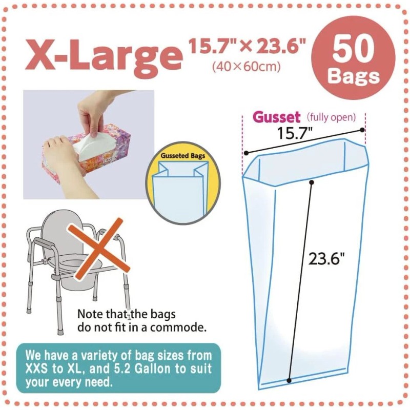 BOS X-LARGE Amazing Odor Sealing Disposable Bags for Diapers, Pet Waste, & Food