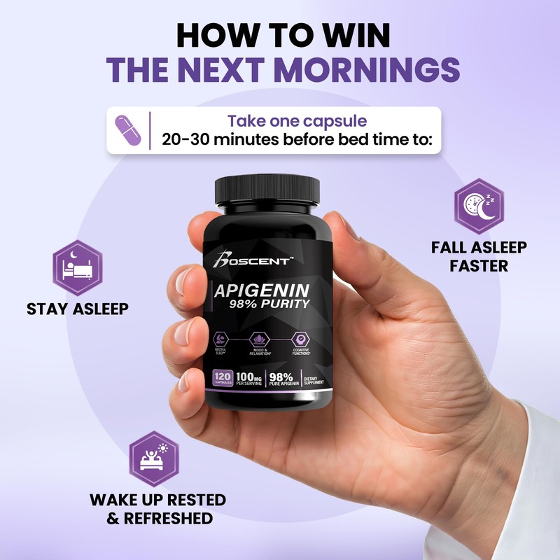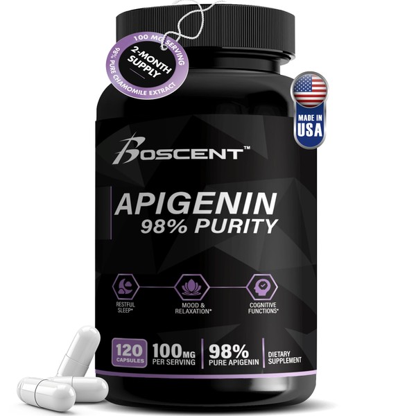 - π£π’π§ππ‘π§ ππ‘π ππππππ¬ π£π¨π₯πππππ: Experience the benefits of BOSCENT 98% purified Premium Apigenin Supplement, making it potent and highly effective. It's extracted from chamomile and each dose contains 100mg of this natural bioflavonoid.