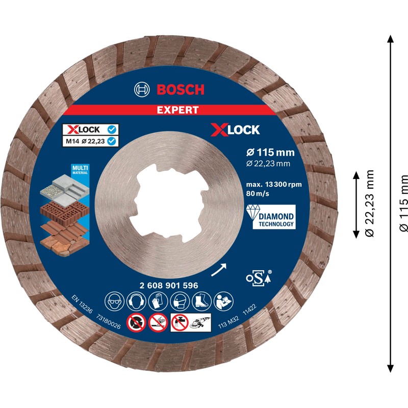 - Box contents: Expert MultiMaterial X-LOCK diamond cutting discs, 115 x 22.23 x 2.4 x 12 mm